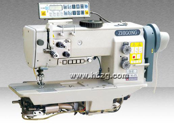 采用大型立式旋梭勾線、滑桿挑線;分為單針、雙針兩種機(jī)型,上下軸用軸承支承,同步齒形帶傳動(dòng),三同步綜合送料:機(jī)針、送布牙和壓腳交叉升降機(jī)構(gòu),保證在額定范圍內(nèi)的任何長(zhǎng)度針距下、縫紉滑性、粘性縫料及特長(zhǎng)制品時(shí)上下層不位移、使縫制品整齊、線跡美觀。